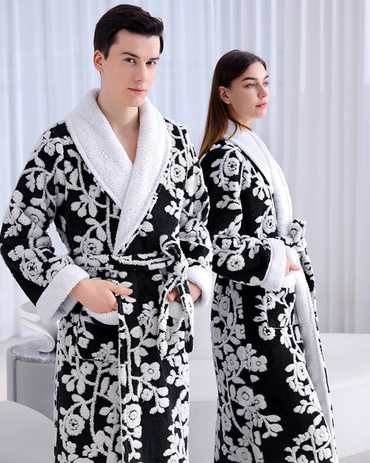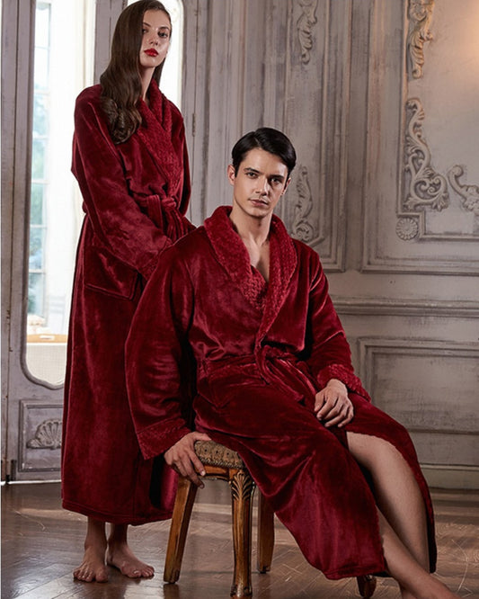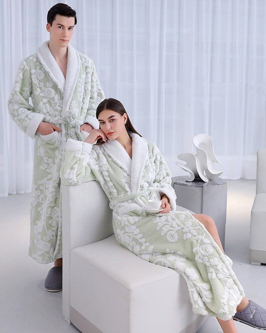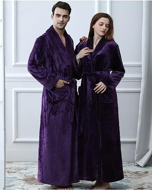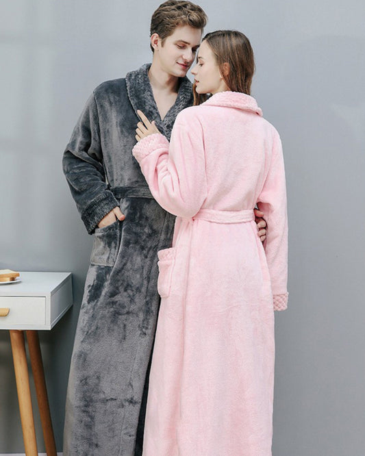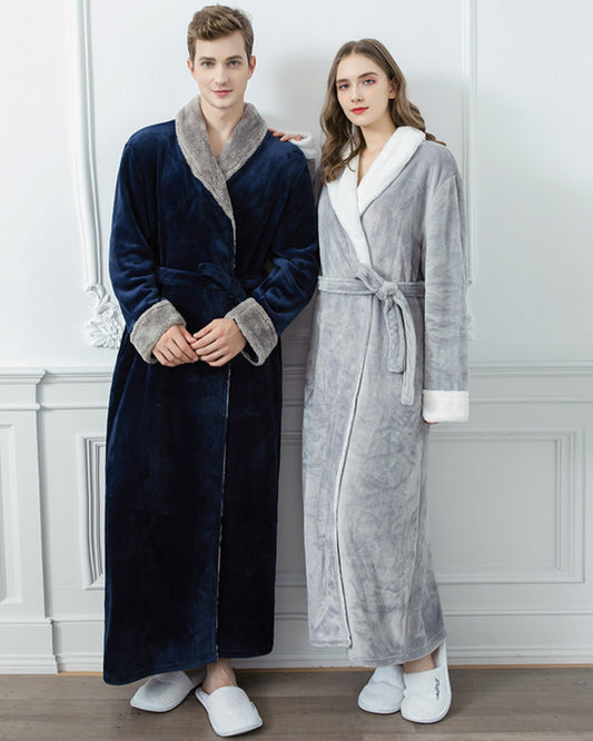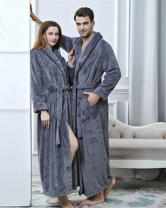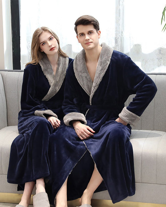 Peignoir couple polaire épais avec moumoute bleu et gris