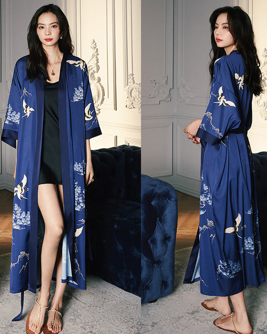 Peignoir femme robe de nuit satin col en V noir et blanc